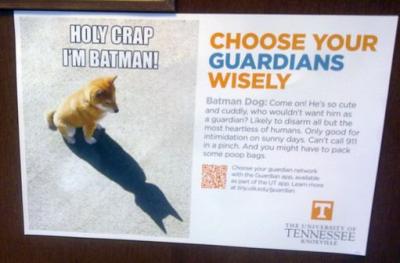 Ein Poster an der Uni, das für ein Handy-App eines Beschützer-Netzwerks wirbt.